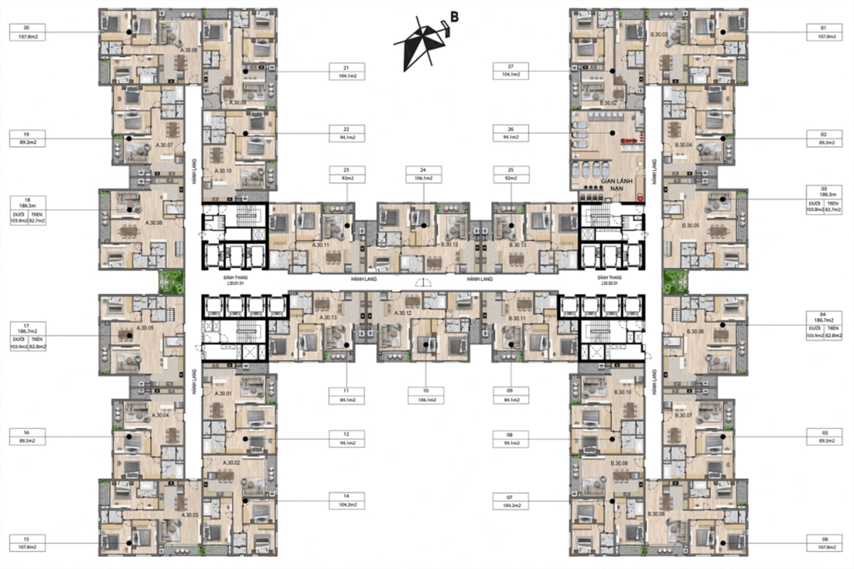 _Căn hộ Dual Key: 93 căn diện tích 104 m2 – 105 m2.