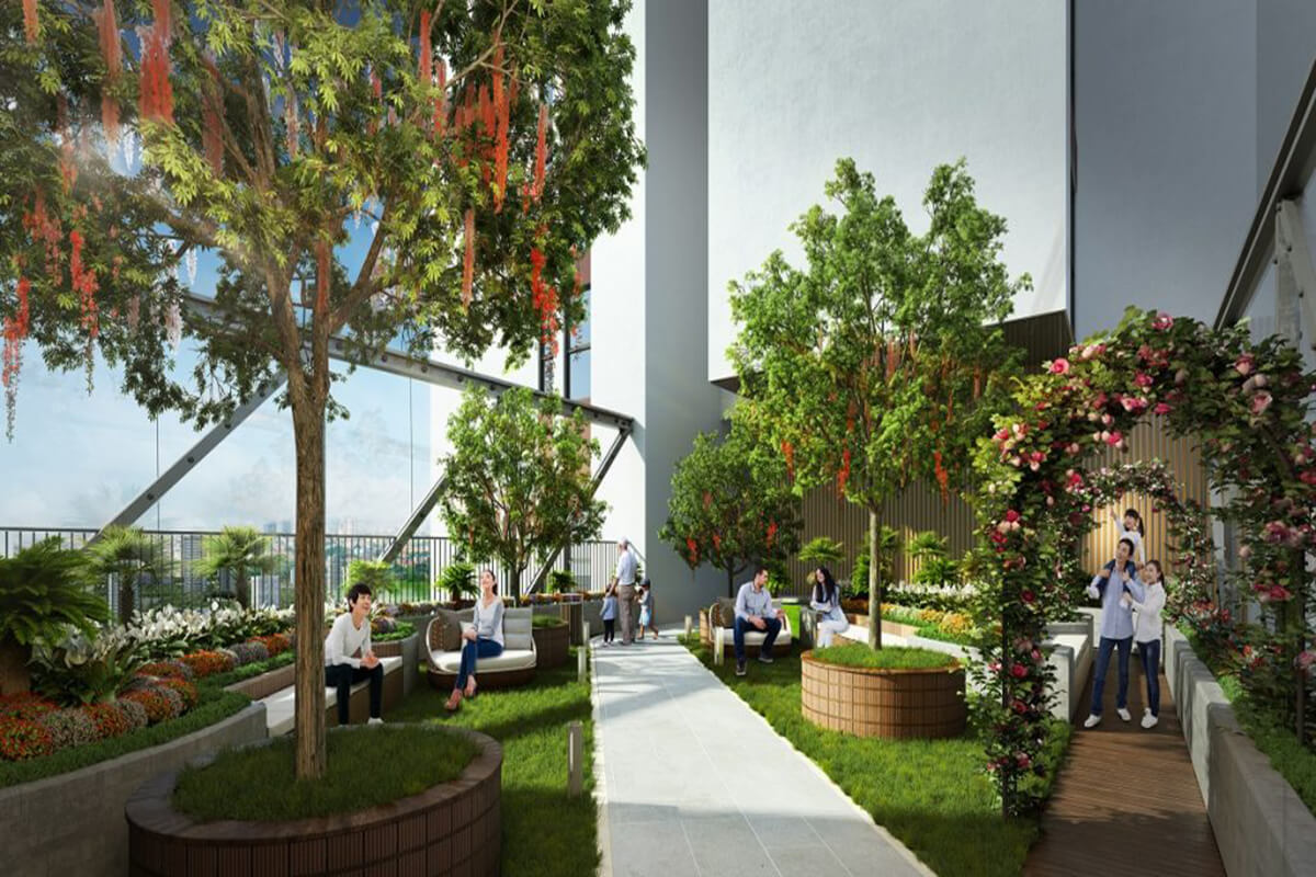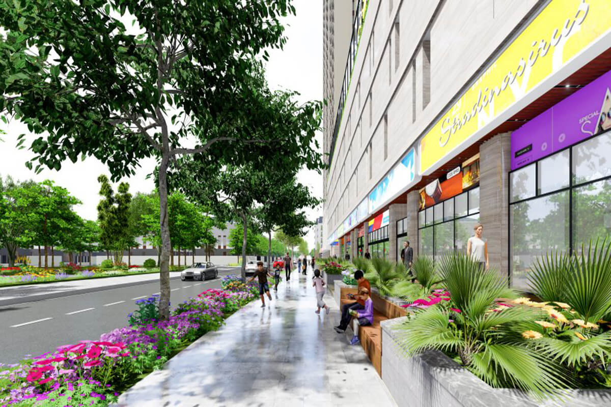 Hệ thống không gian xanh, vườn hoa được bố trí phân tán đều khắp các khu vực trong dự án, đảm bảo các yếu tố về sinh thái và môi trường.